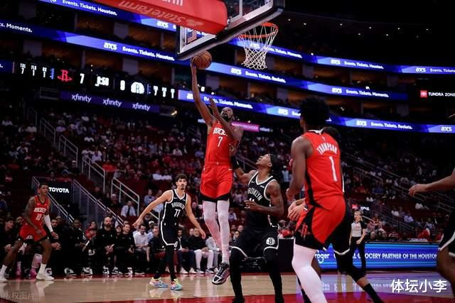 本场比赛火箭放弃五大阵容,奥科吉顶替亚当斯首发出战。上来篮网率先进入状态,小波特反击打进,取得7-2领先,杜兰特跳投稳住,申京扣篮打成2+1,之后两队陷入拉锯战,进攻端你来我往,比分多次打成平手。火箭刚要拉开,萨拉夫三分命中,马丁和夏普三分也进,追至25-27。好在火箭进攻势头依然火热,谢泼德三分命中,申京篮下拿分,伊森连续命中2记三分,轰出一波15-0攻势,首节打完取得42-25领先。