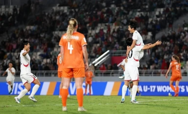 整场比赛,朝鲜队展现出压倒性的实力。开场仅14分钟,她们便率先破门:荷兰防线在对手一记精准传中下出现混乱,金元心(Kim Won-sim)抓住机会头球破门,为朝鲜队首开纪录。