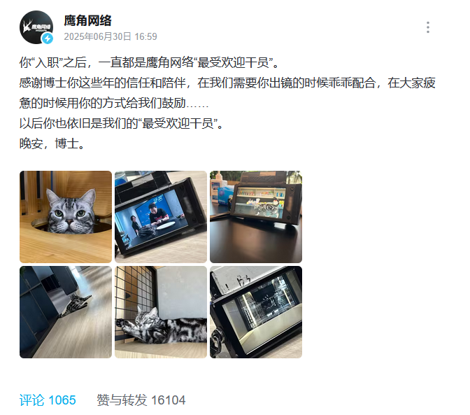 鹰角猫猫员工去世官方动态讣告