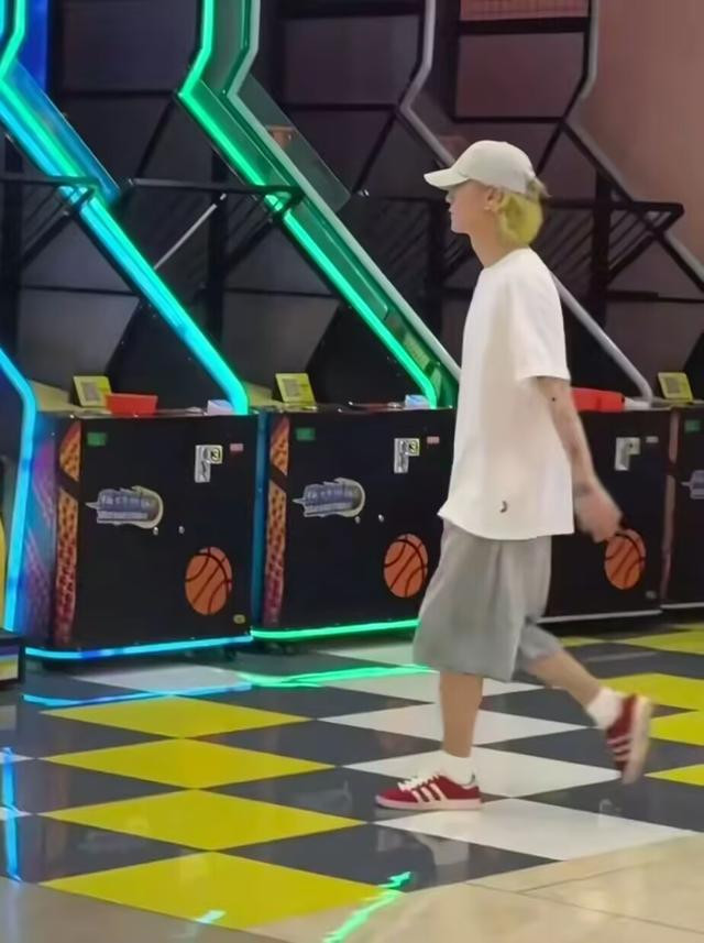 这么一穿啊,整个人显得清爽又随性。他那穿搭其实挺简单的,但就那头金发,太亮眼了,让人一眼就能瞅见是他。