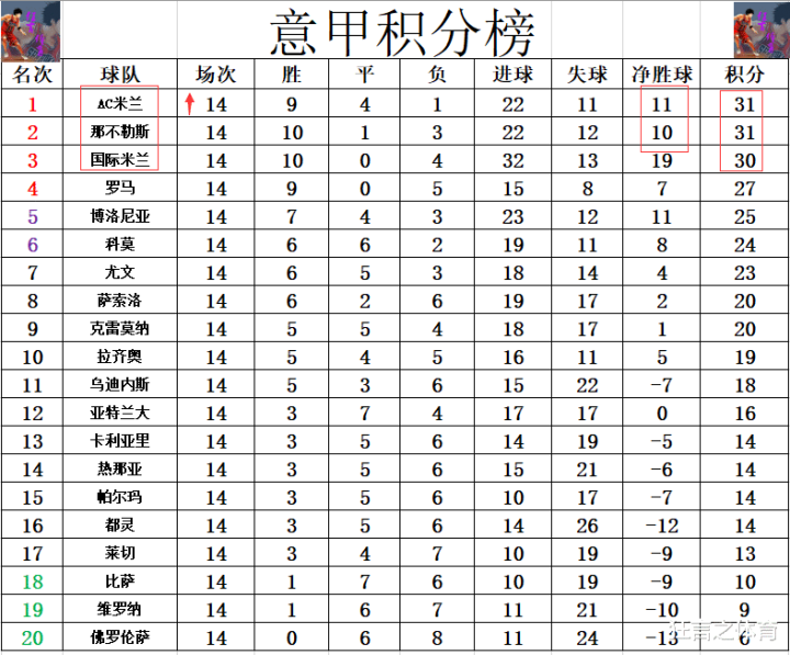 积分榜方面,AC米兰逆转绝杀都灵后夺取3连胜,这3场比赛他们都是1球小胜,这样的话他们再超过国米1分,还是凭借1个净胜球优势力压那不勒斯再次登顶。前三分差在1分之间,意甲还是五大联赛榜首争夺最激烈的。