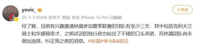 目前林葳尚未做出要代表哪队出战夏联的选择,据此前报道他在参加G League国际球员选秀(北京时间7月11日)之后,依照选秀结果才会最终决定。