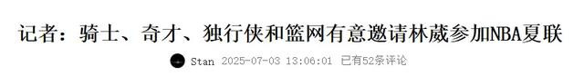 骑士、奇才、独行侠和篮网,均有意邀请林葳出战今年的NBA夏季联赛。